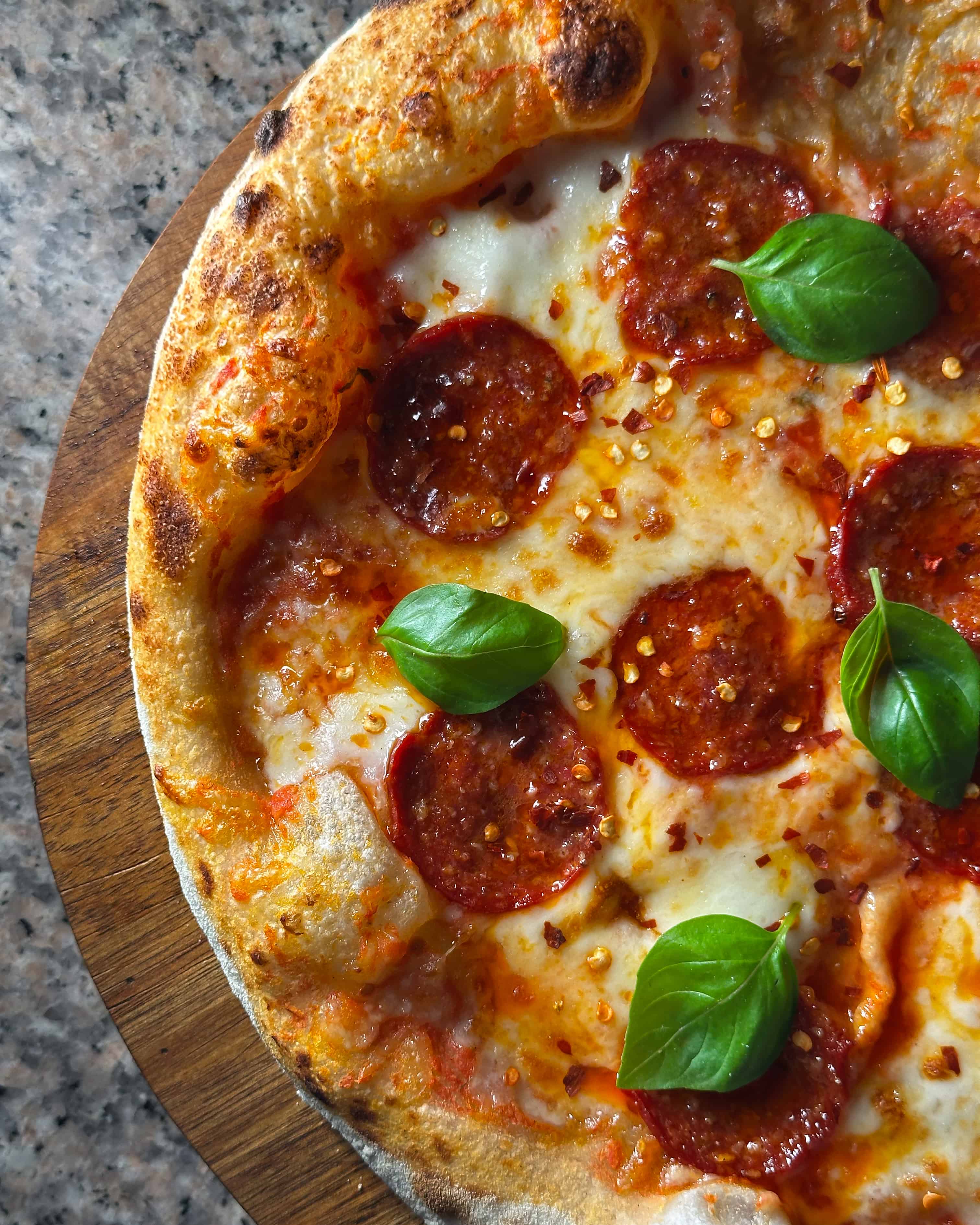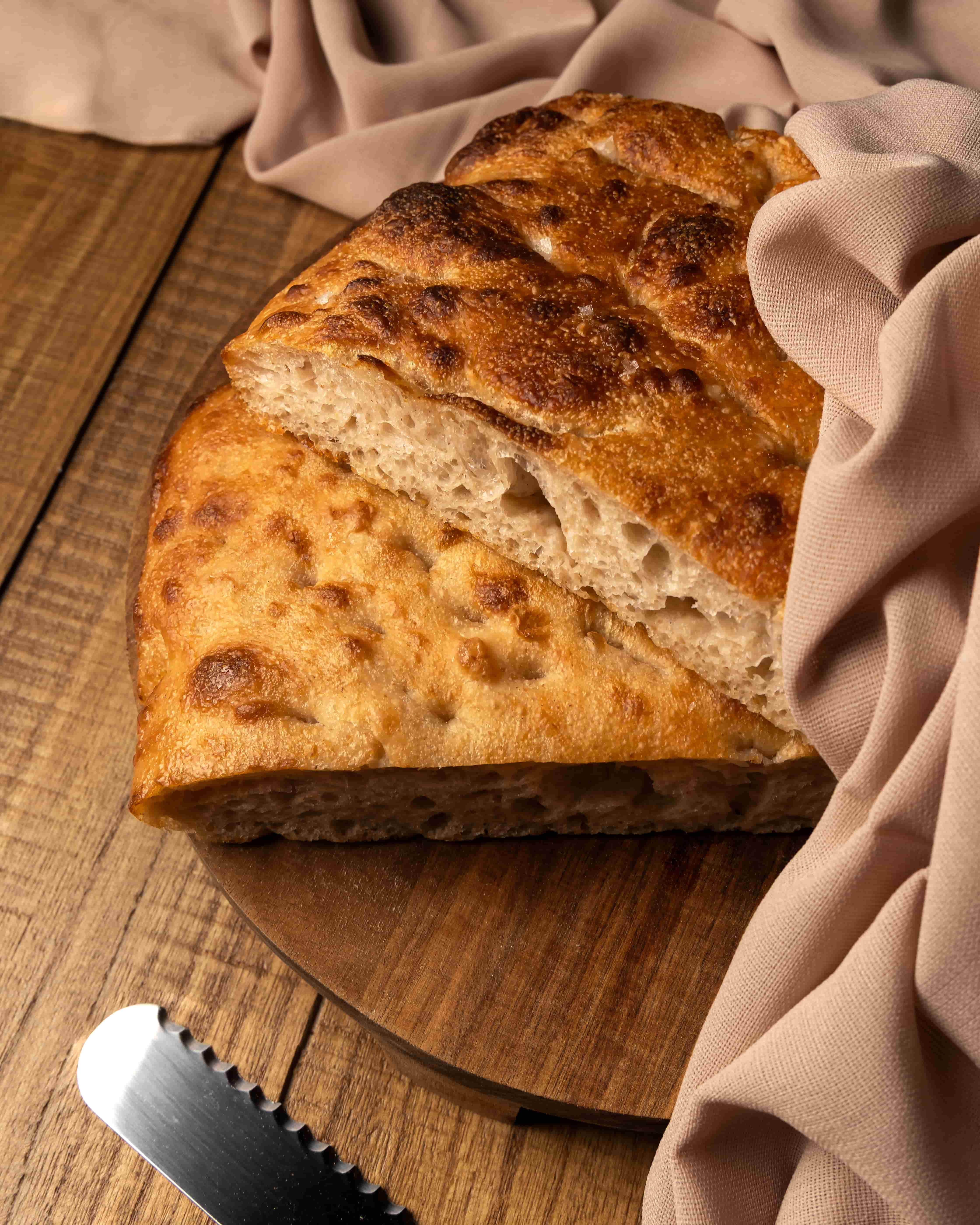 The dough ferments slowly, developing flavour, texture, and digestibility.